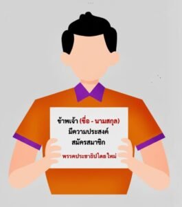 รูปถ่ายตนเองพร้อมเอกสารยืนยันการสมัครที่เขียนข้อความ ข้าพเจ้า (ชื่อ - นามสกุลผู้สมัคร) มีความประสงค์สมัครสมาชิกพรรคประชาธิปไตยใหม่