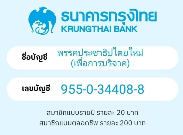 ชื่อบัญชีพรรคประชาธิปไตยใหม่(เพื่อการบริจาค)